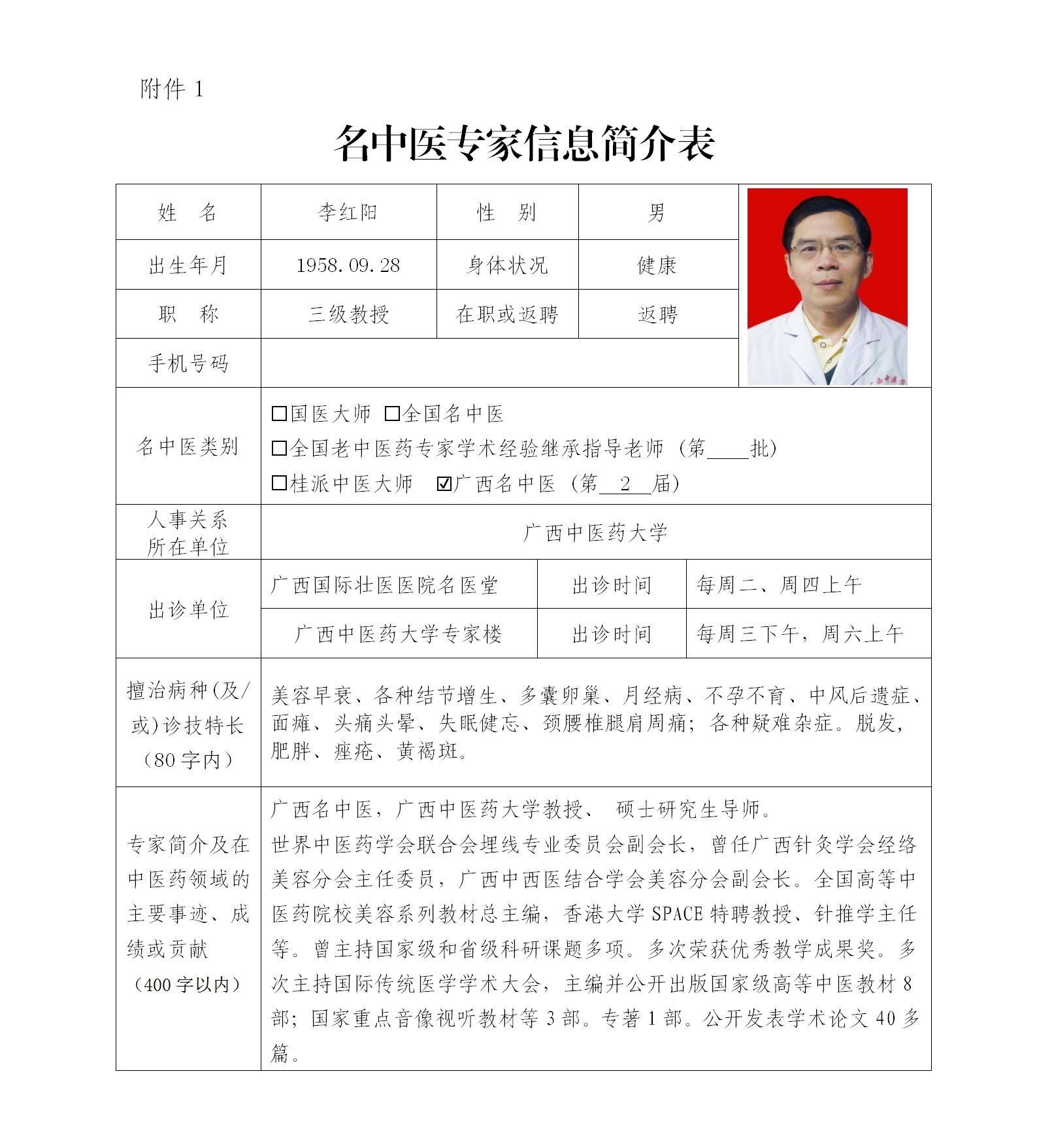 李红阳名中医专家信息简介