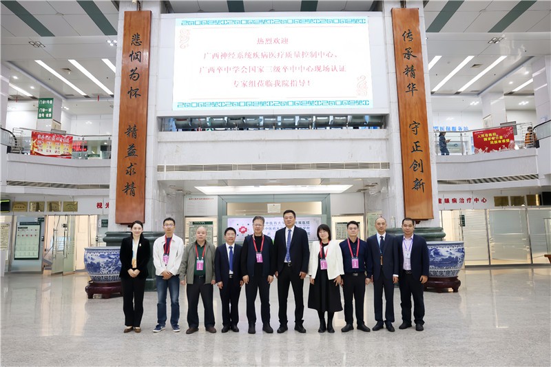 为进一步加强我院三级卒中中心建设,规范脑卒中诊疗质量控制,顺畅卒中绿色通道,提升卒中患者的救治能力。11月11日,广西卒中学会会长秦超教授带领广西神经系统疾病医疗质量控制中心专家组一行五人来我院进行国家三级卒中中心现场评审和指导。医院党委书记桂雄斌,党委副书记胡跃强,副院长、仙葫院区院长张高炼及卒中中心相关科室负责人陪同迎检。